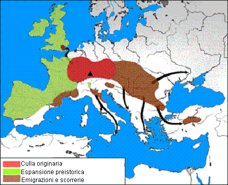 Qui a Trieste ( nucleo urbano preistorico ) abbiamo i Castellieri, edificati dagli stessi Celti che vivevano in Austria e Carniola. Per trovare altri resti Celti, bisogna valicare le Alpi a Nord in Karten, Austria. Poi secondo la mappa, i celti sarebbero scesi lungo la penisola scalando gli appennini invece di preferire le pianure costiere, poco auspicabile come scelta logica..