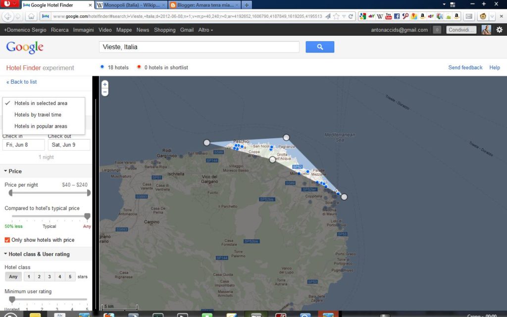 L’ultima novità si chiama Google Hotel Finder, servizio ancora in fase sperimentale (e disponibile solo in inglese) ma già funzionante con gli hotel del Gargano. Per farvi capire di cosa si tratta vi mostro un esempio qui sotto. (Continua dopo l’immagine)
