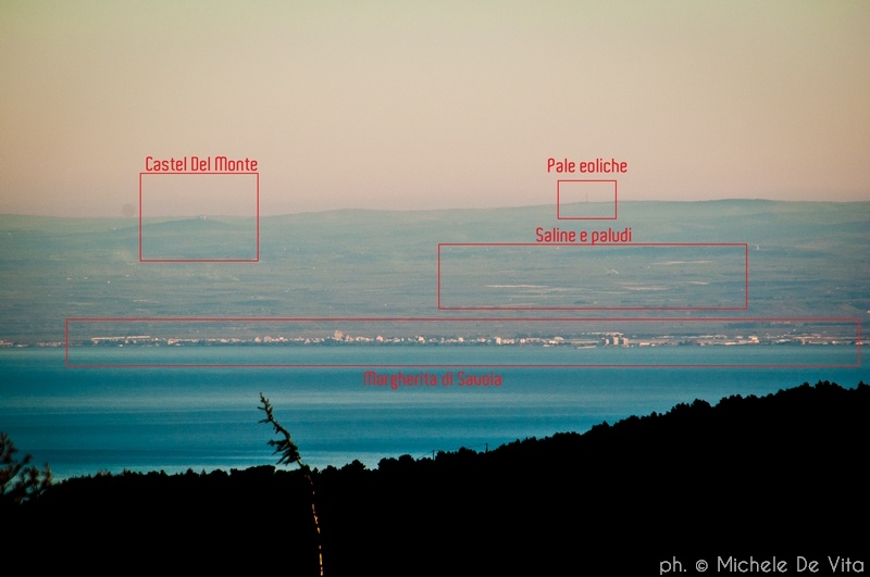 Grazie al mattinatese Michele De Vita vi possiamo mostrare queste foto dove il Castel Del Monte di Andria è ben visibile dal territorio di Mattinata, in pieno Gargano.