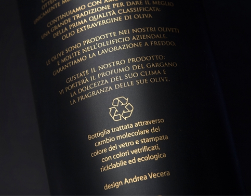 | L’obiettivo è stato quello di ottenere un bottiglia elegante perché l’olio è un dono prezioso. |