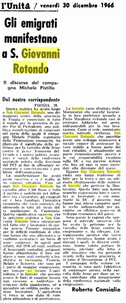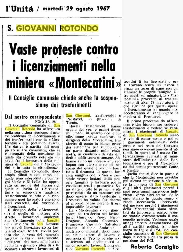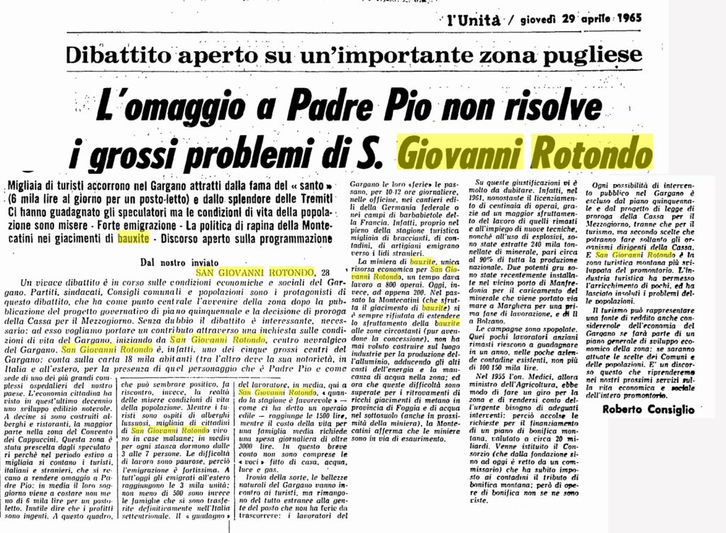 Questa volta però vi proponiamo alcuni ritagli del giornale L’Unità trovati dall’amico Ludovico Centola de La valle degli eremi.
