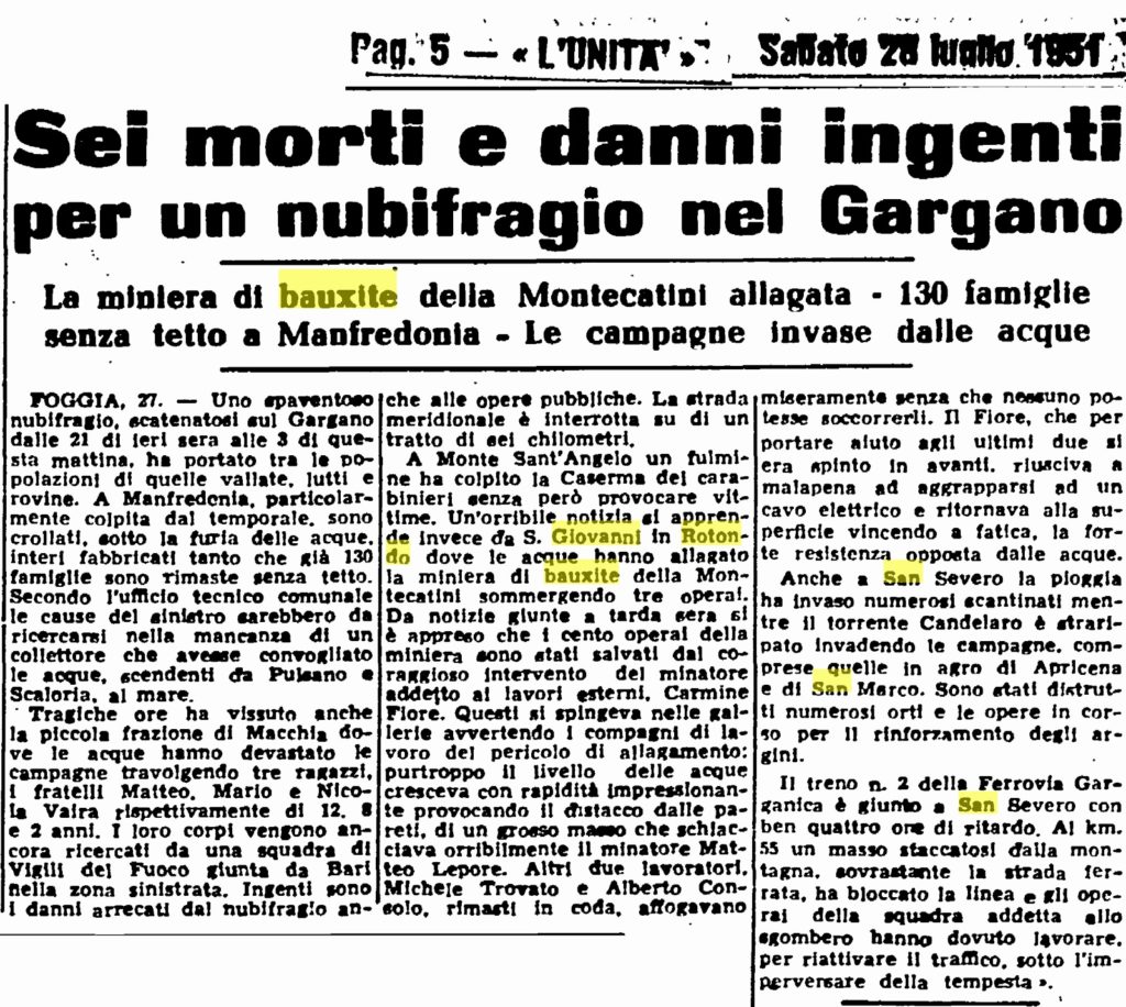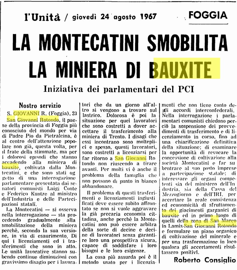 Abbiamo trattato diverse volte della miniera di bauxite di San Giovanni Rotondo (vedi qui e qui).