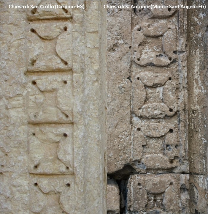 Non è poi così soprendente che due chiese garganiche abbiano simili motivi architettonici e decorativi. E' probabile che le stesse maestranze di ascendenza longobarda, presenti a Monte S. Angelo, abbiano trasmesso i modelli anche nel territorio circostante. Bisogna ricordare che, nei primi secoli del nuovo millennio, Monte S. Angelo con la Chiesa di San Michele Arcangelo era uno dei luoghi religiosi più importanti del Medioevo in Europa, si univa attraverso la Via Romea ai pellegrinaggi da un lato verso Santiago de Compostela e dall'altro verso quelli ad oriente. Non a caso, anche da un punto di vista politico, la terra di Capitanata rappresentava un punto strategico importante almeno tra il il 1100 e il 1200/1250. Infatti Federico II stabilì il palazzo imperiale a Foggia e quello militare a Lucera. Non deve dunque stupire che questa terra, la nostra terra, fosse un crocevia di interessi politici, economici e religiosi.
