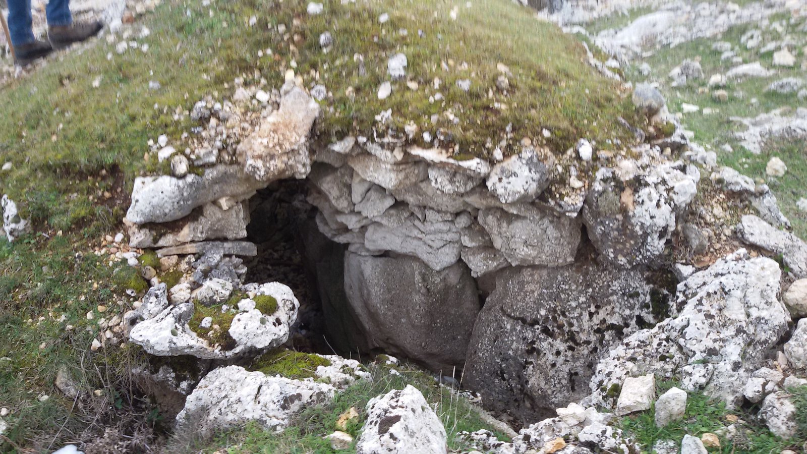 Penso sia interessante segnalare quanto segue: giorni fa ho visitato una zona più a monte e distante un centinaio di metri dal sito dolmenico di Valle Spadella, zona Galluccio, nel Comune di Monte Sant’Angelo con l’amico Franco Vaira; avevo già visitato la zona qualche anno prima in compagnia del prof. Giuseppe De Padova, notando delle coppelle, qualche probabile ipogeo e solchi per la raccolta delle acque. Questa volta, con Vaira, abbiamo notato dei frammenti di vasi di argilla probabilmente databili dal periodo neolitico ed eneolitico fino all’età del bronzo, nonchè selce lavorata. Continuando la nostra escursione, abbiamo notato ancora alcuni ipogei, rigonfiamenti e depressioni del terreno, coppelle, canalizzazioni che finivano in vasche di raccolta e cerchi formati da massi affioranti dal suolo. Quasi al termine dell’escursione abbiamo visto un tumulo appena affiorante dal piano di campagna, coperto da terreno e vegetazione e con due rotture, una sul colmo e l’altra all’estremità opposta dell’ingresso. Ipotizzo, con una certa probabilità, che si tratti di un dolmen a tumulo che presenta un ingresso molto piccolo, di circa 0.40 per un metro, che porta verso un corridoio largo circa 70 cm. e lungo circa 6-7 m. delimitato da grosse lastre in pietra di circa 1,10 m. per 0,50 m. con uno spessore di circa 20-30 cm. e coperto da una falsa volta.